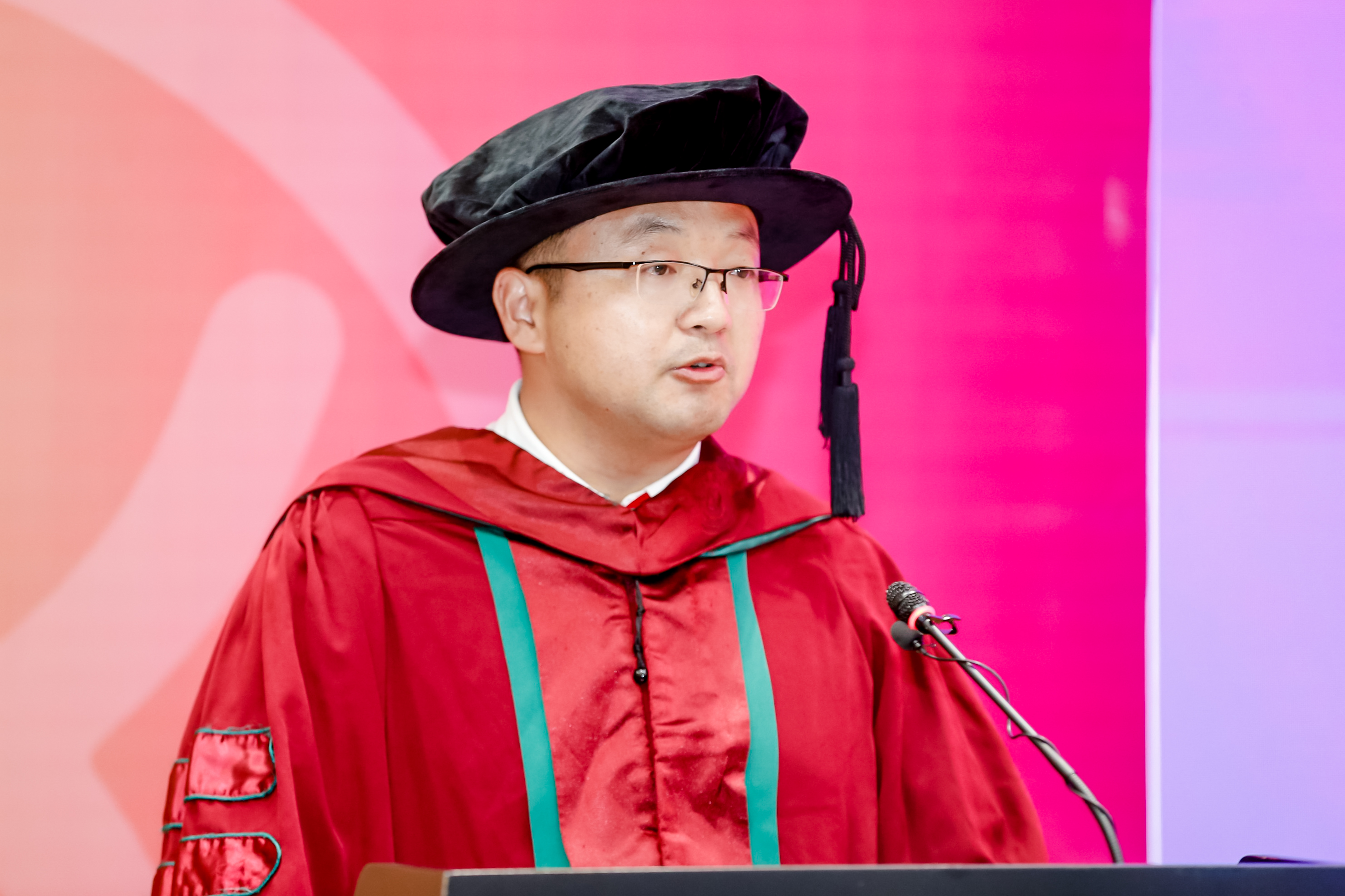 芮泽宝教授代表教师发言。他希望毕业生们在科技飞速发展的时代,保持学习力和思想力,与时俱进;保持明辨是非的能力,把握人生方向;将所学化为行动力,做到“知行合一。积极面对工作和生活中的挑战,时刻怀有中大化工人应有的自信与格局,在不断的调整中成就最好的自己。