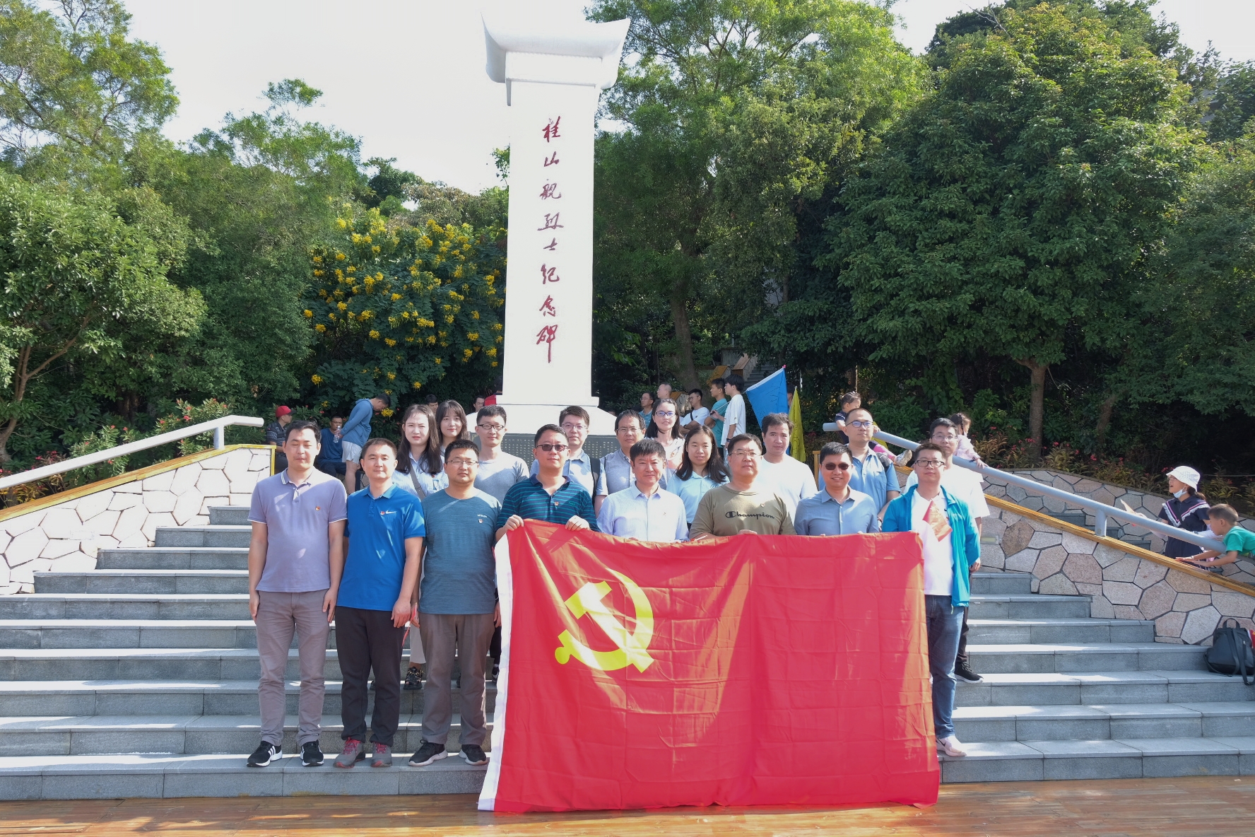随后,全体教职工党员前往桂山舰烈士陵园,瞻仰桂山舰烈士陵园纪念碑,向革命先烈敬献鲜花。
