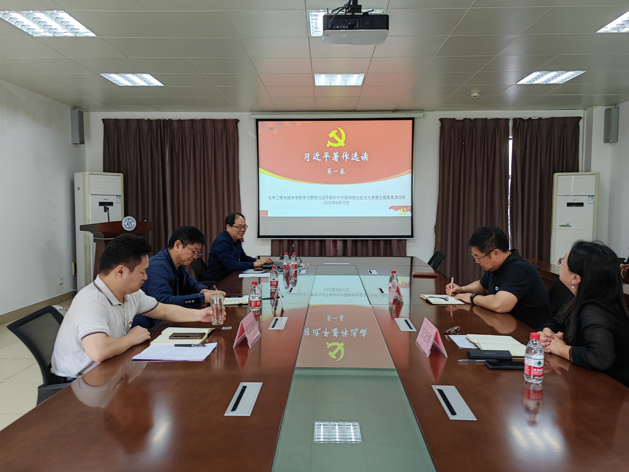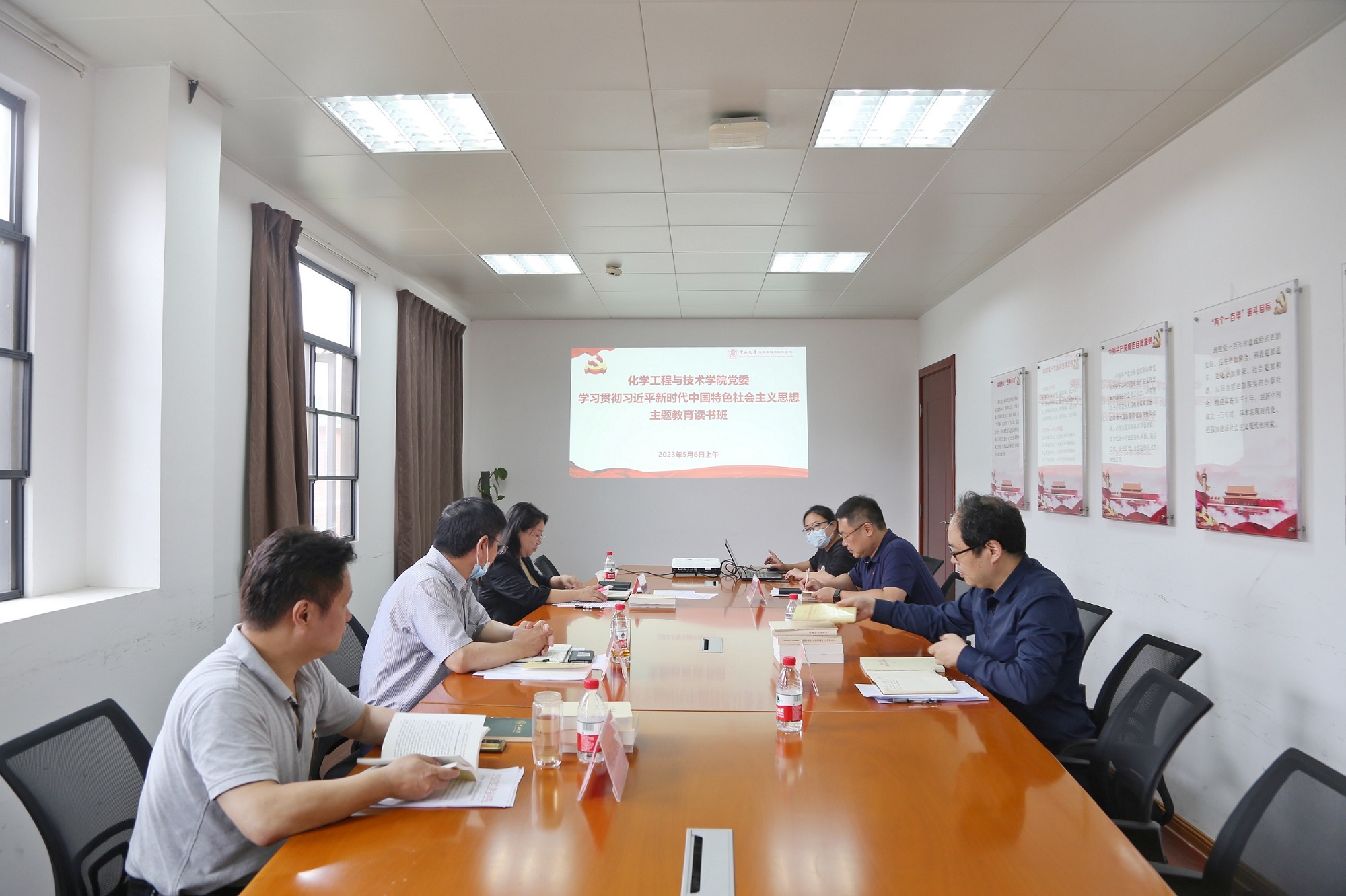 学院党委主题教育读书班坚持以学铸魂、以学增智、以学正风、以学促干,党员领导班子成员带着感情学、带着责任学、带着问题学,坚持读原著学原文悟原理,推动党的创新理论真正入脑入心入行。4月25日至5月12日,主题教育读书班成员围绕学深悟透习近平新时代中国特色社会主义思想,开展了10次集中学习研讨,完成了党的二十大报告和党章、《习近平新时代中国特色社会主义思想学习纲要》、《习近平著作选读》(第一、第二卷)、《习近平新时代中国特色社会主义思想专题摘编》、《论党的自我革命》等书目的学习,并积极参加了学校组织的4次集中培训学习。