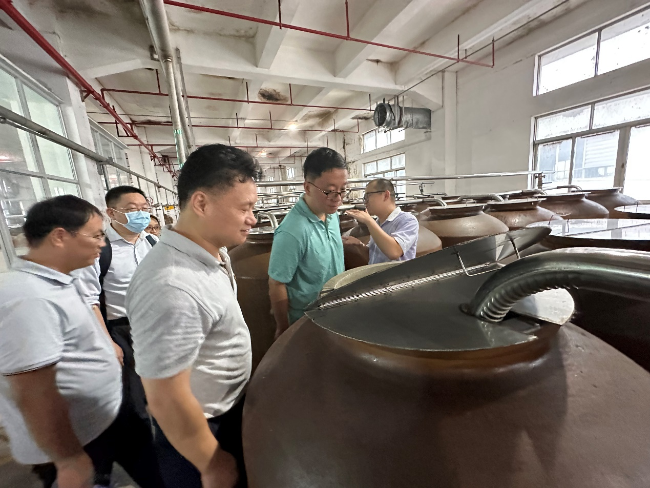 为推进学习贯彻习近平新时代中国特色社会主义思想主题教育调查研究走深走实,专任教师党支部组织学院科研团队加强与地方企业合作交流,推进学院生物化工科研成果转化。6月14日,学院党委委员、院长欧阳钢锋,党委委员、副院长、专任教师第一党支部书记薛铭,党委委员、院长助理刘威,专任教师第二党支部书记芮泽宝,专任教师党支部部分党员等一行10人赴佛山市九江酒厂有限公司开展调研交流。
