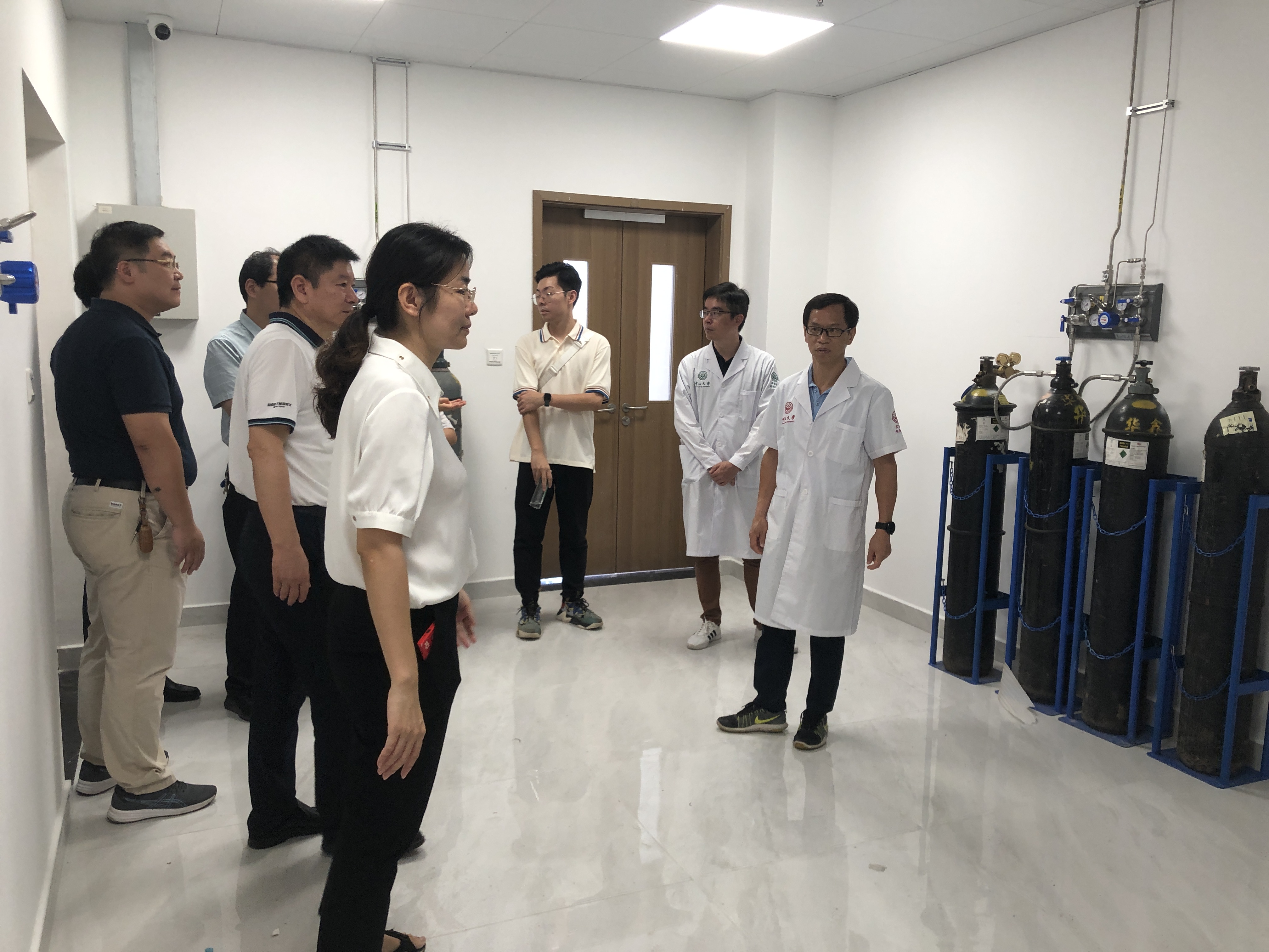 8月8日上午,设备与实验室管理处胡国庆处长、郑仕勇副处长一行4人到我院海琴五号大楼检查指导实验室安全工作。学院党委书记田宝才,副院长薛铭,副院长、设备与实验室管理办公室主任孟国哲,院长助理陈强及设备与实验室管理办公室工作人员陪同参加检查。
