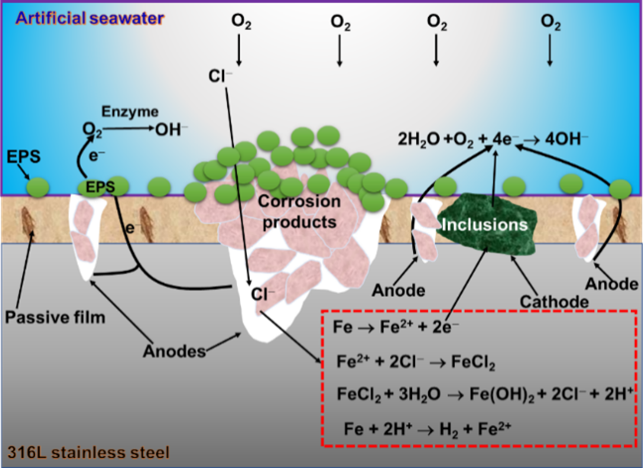 图2 海水介质中EPS对316L SS的腐蚀机理示意图