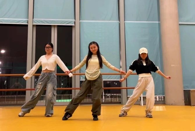 同学们在拉伸中训练脊椎与韧带的柔韧性,在音乐的节奏变换中感受律动。热身后跳舞的动作才会更大更满,也能防止受伤。热身后经短暂的休息,学员们正式投入JAZZ舞学习,指导老师一段一段地进行分解教学,对于稍显吃力的同学还会悉心教导。每一期活动结束后,学员们都能学会一支简单优美的舞蹈。