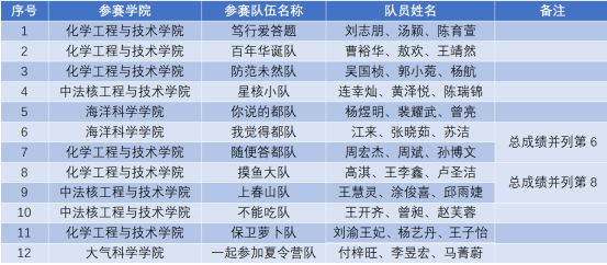 经过紧张刺激的头脑风暴,以下12支队伍(共36名选手)凭借自身丰富的实验室安全知识积累脱颖而出,晋级决赛。