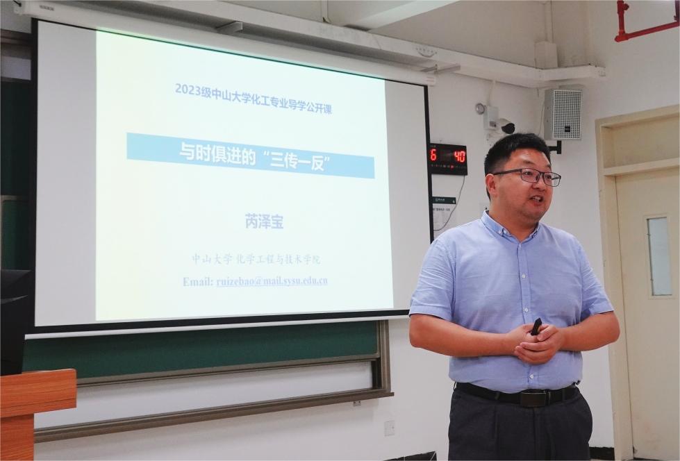 2024年4月23日,我院在中山大学广州南校区丰盛堂C202为本科2023级学生举办了“逐梦化工”专业导学系列讲座第八讲。本次讲座由芮泽宝教授主讲,主题为“与时俱进的三传一反”。