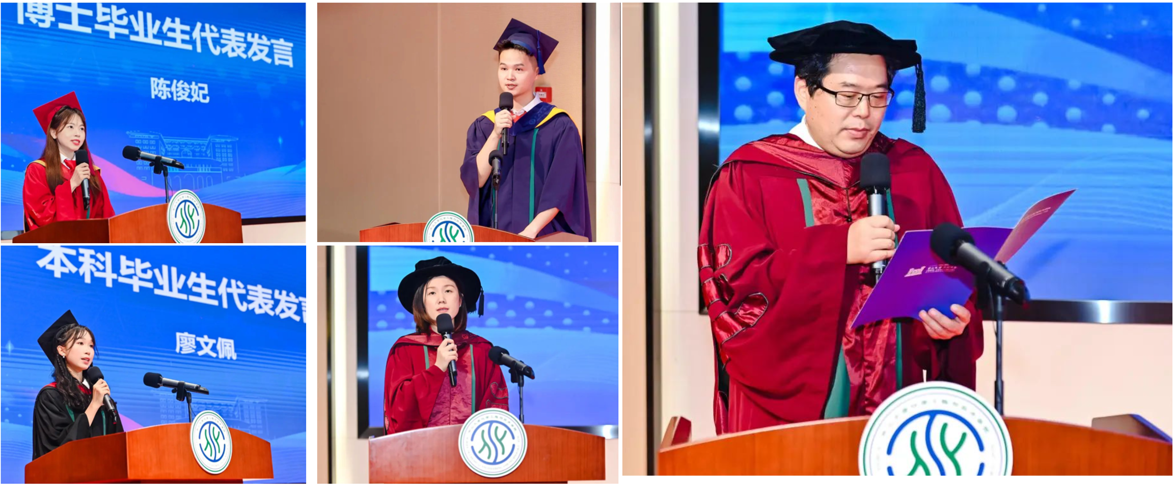 陈俊妃、韩方泽、廖文佩三位同学分别代表博士毕业生、硕士毕业生和本科毕业生发言。他们代表毕业生感谢了学院的培育,也祝愿同窗们永远铭记“博学,审问,慎思,明辨,笃行”的校训,不忘初心、牢记使命,勇敢踏上新的人生征程。冯琳副教授代表全体教师发言,勉励毕业生传承中山先生“天下为公”的精神,勇敢承担责任,踏实做事,为推动国家和社会发展贡献力量。