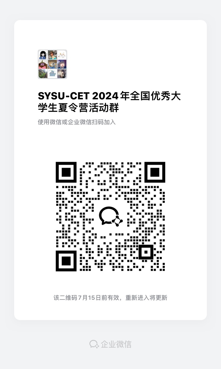 确定参加夏令营的同学请务必于7月9日15:00点前填写问卷https://www.wjx.cn/vm/tUiTemH.aspx,并加入营员活动微信群(见上图),进群备注“序号-本科学校-姓名”,逾期未加入者,将视为自动放弃本次入营资格。后续通知将在群里发布。