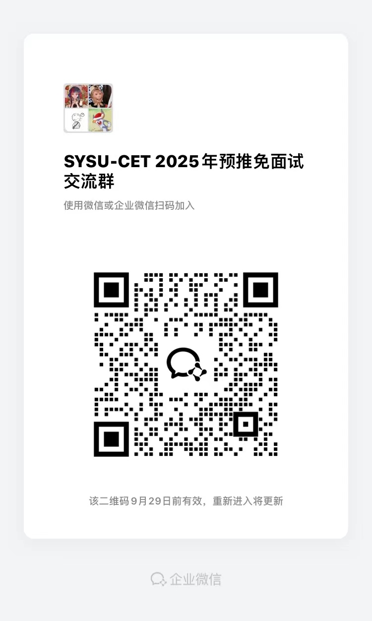 确定参加面试的同学请务必于92312:00前加入企业微信群(请用微信扫码入群),进群备注“序号-姓名”,逾期未加入者,将视为自动放弃面试。后续通知将在群里发布。