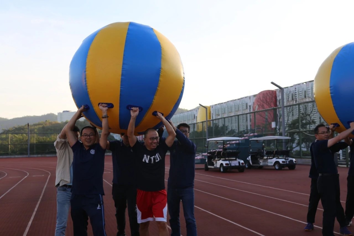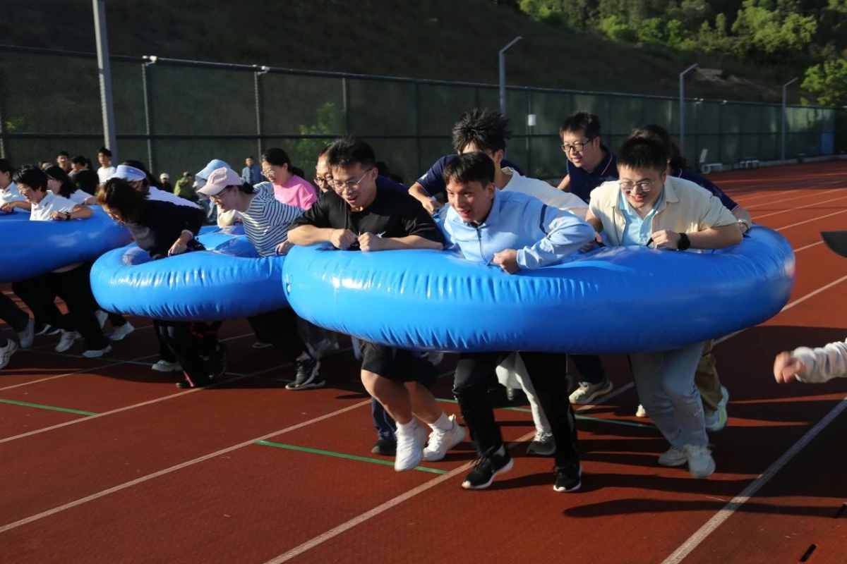 在这场别开生面的教职工趣味运动会中,有一个特别引人注目的项目——“八仙过海”。这个项目不仅是对老师们体力和协调性的挑战,更是团队合作精神的完美展现。学院老师们共同驾驭着一艘充气“宝船”,在赛道上展开了一场既刺激又欢乐的竞速。老师们在比赛中展现出的团结协作、勇往直前的精神,正是我们学院文化的重要组成部分。他们用实际行动诠释了“团结就是力量”的真谛,也为学生们树立了榜样。