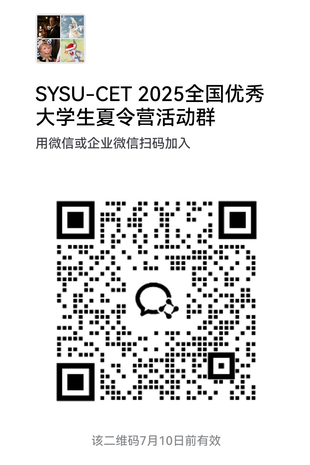 确定参加夏令营的同学请务必于7月5日15:00点前加入营员活动微信群(见上图),进群备注“序号-本科学校-姓名”,逾期未加入者,将视为自动放弃本次入营资格。后续通知将在群里发布。