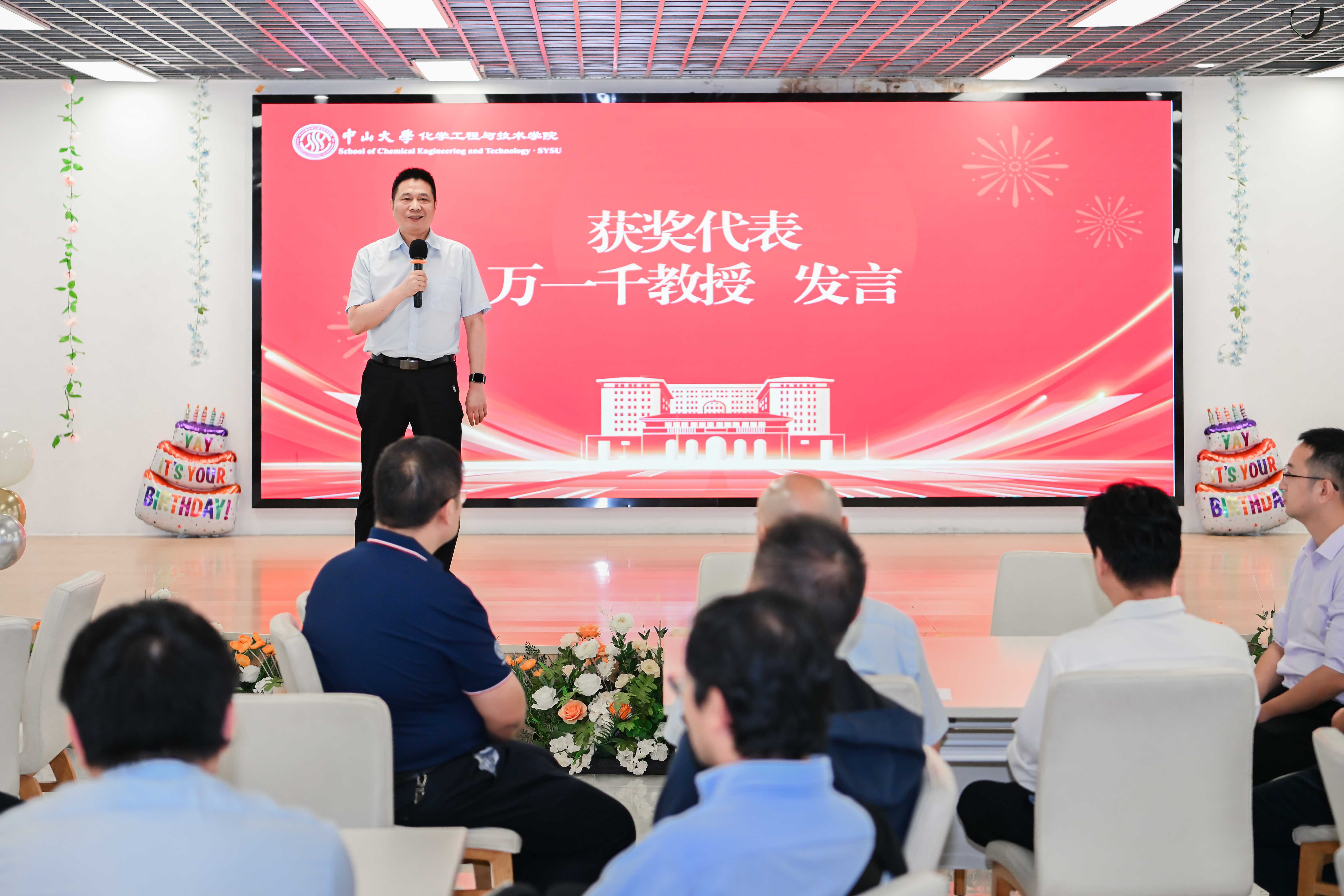 获奖代表万一千教授发言,他感谢学院的信任与支持,结合自己十年来学院工作的亲身经历,分享了对学院建设、发展与稳定的深刻体会,勉励大家在学院快速发展的良好基础上,持续保持积极向上的学院氛围,团结奋斗,砥砺奋进。