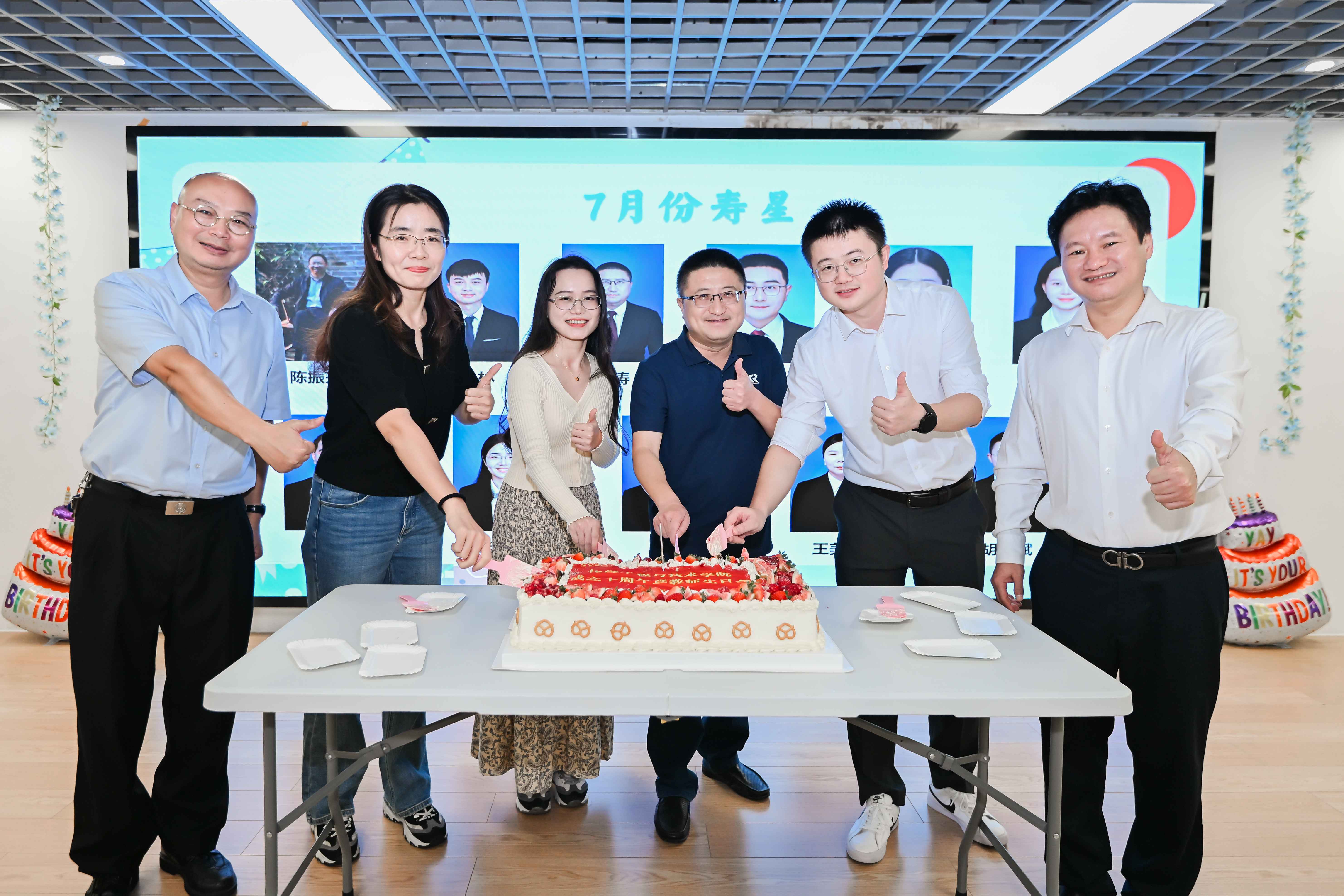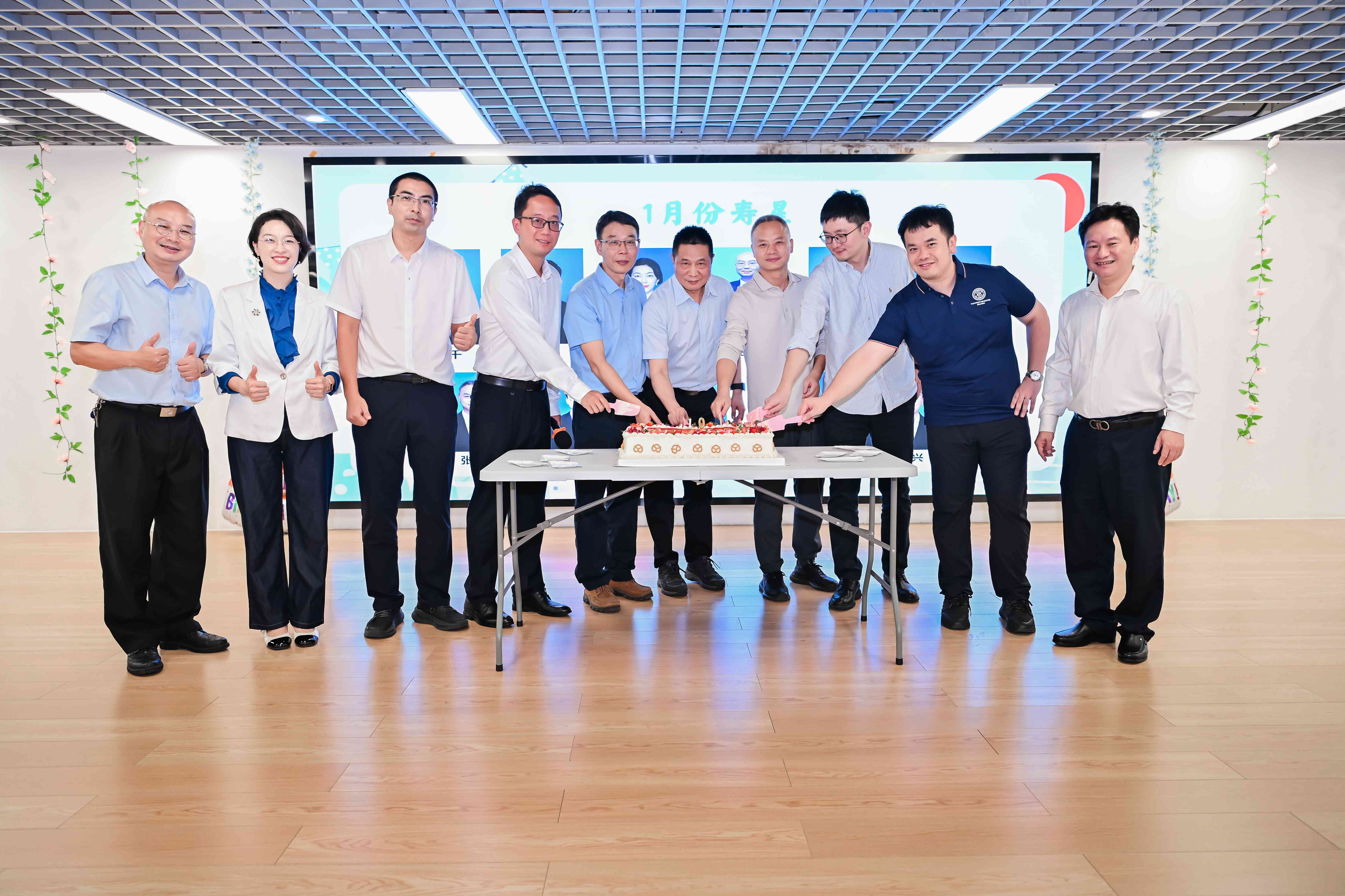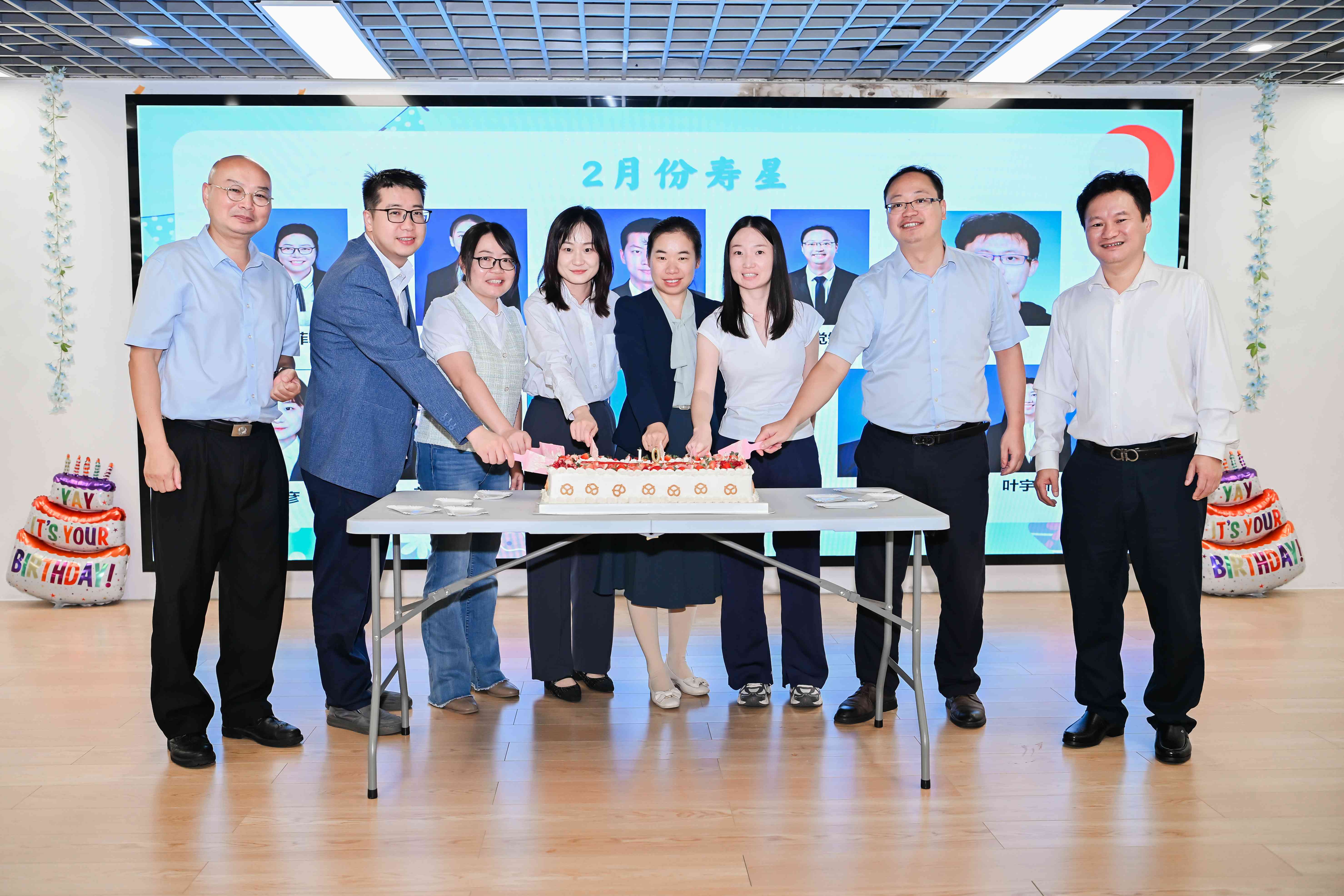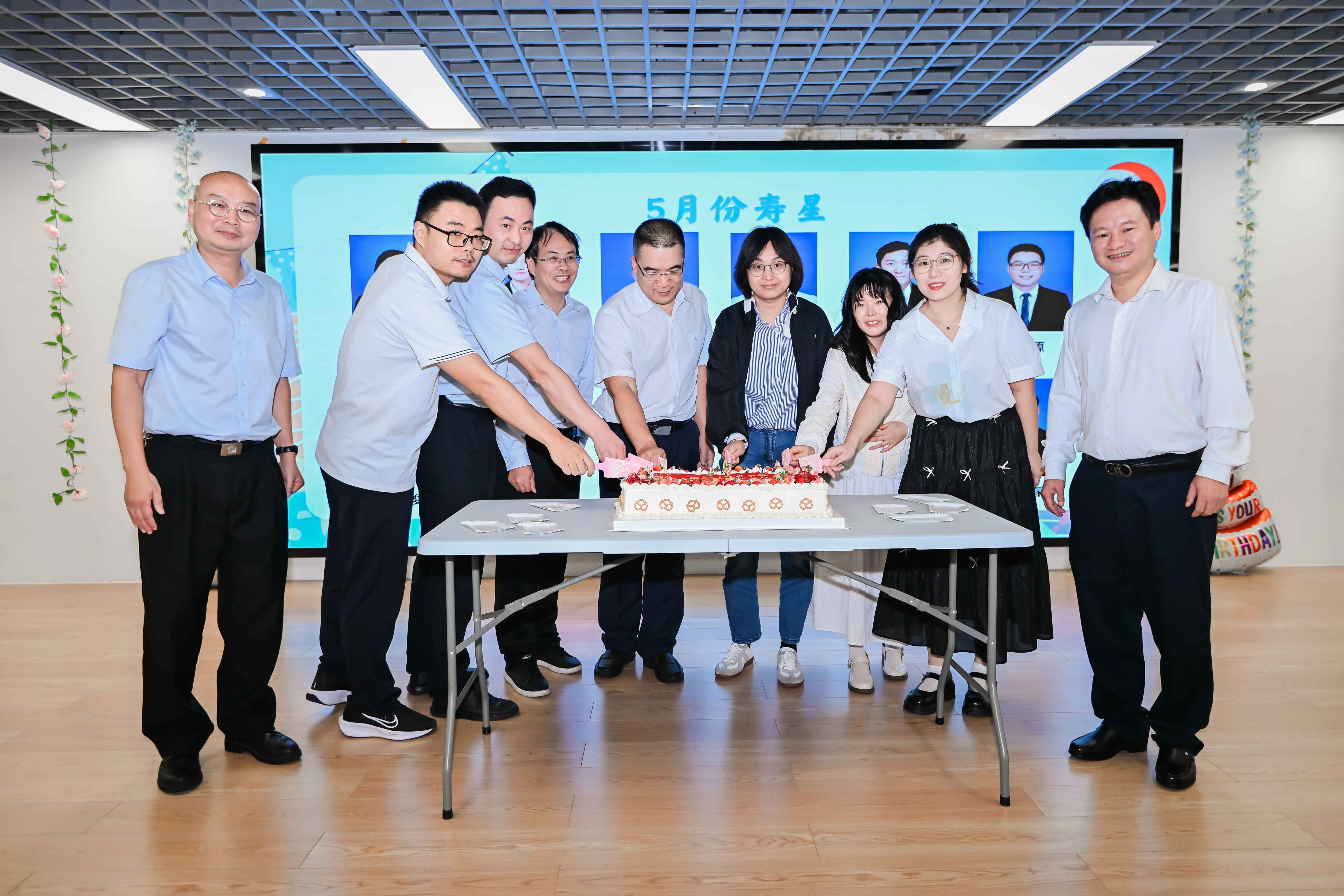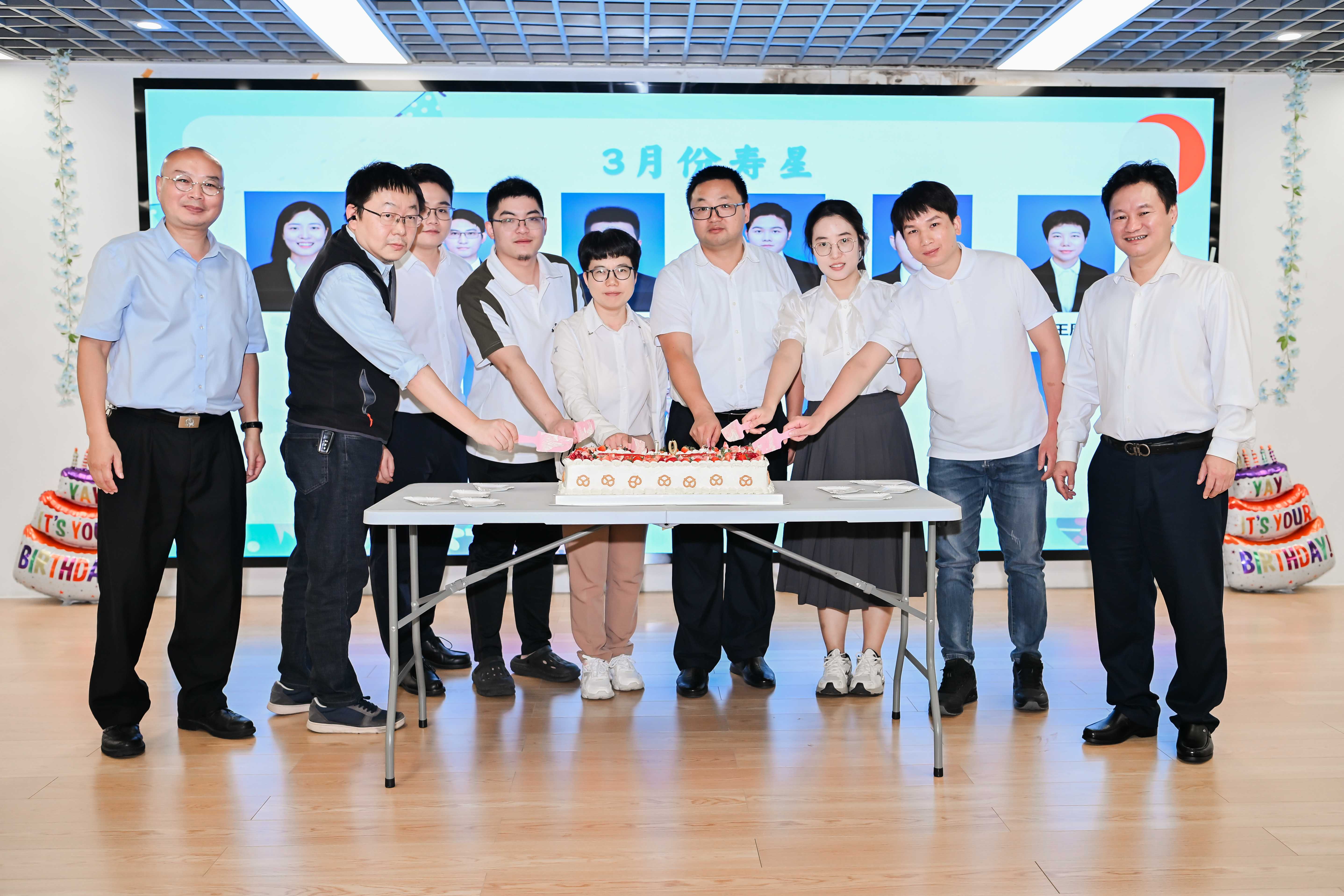 生日会上,全体教职工吹蜡烛,切蛋糕,许心愿。欧阳钢锋院长和荐志强书记为学院十周年生日和全体教职工集体生日送上暖心祝福。