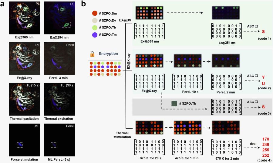当前,产品假冒与信息盗窃等问题日益突出,对社会经济安全、品牌信誉及个人隐私构成严重威胁。因此,开发具有高安全性的防伪与加密技术已成为学术界和工业界的共同迫切需求。传统防伪手段,如全息标签、荧光油墨、条形码/二维码等,普遍存在易被复制、解码或篡改的局限性。相较之下,多模态发光材料能够在光、电、力、辐射等多种激发条件下产生光发射,展现出更高的防伪与加密安全性。发光热稳定性是多模态发光材料的关键性能指标,直接决定了其在恶劣环境下的工作可靠性与稳定性。在固态照明、安全标记、温度传感及空间探测等应用领域中,实现材料在宽温度范围内保持高发光效率尤为重要。然而,如何合理调控缺陷能级的种类、分布及密度,从而在宽温度范围内实现高性能多模态发光,仍是当前面临的关键挑战。