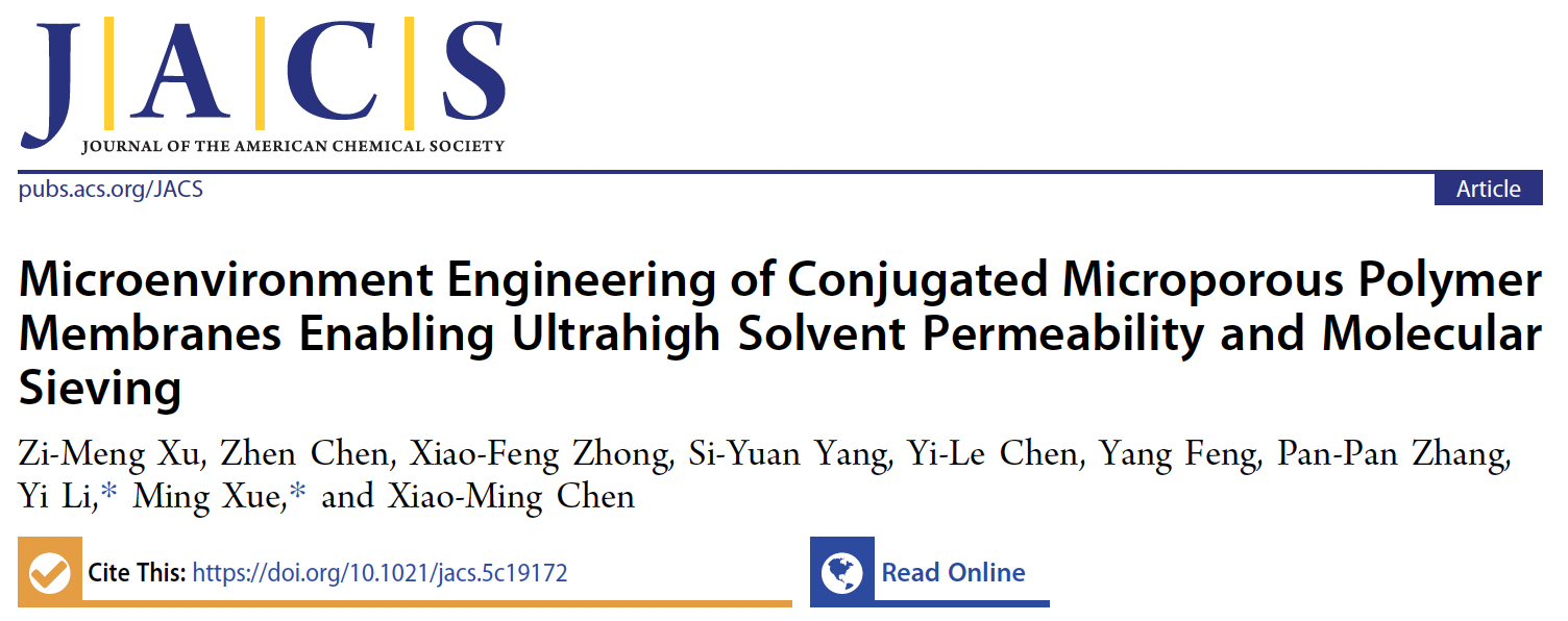 JACS:高稳定性共轭微孔聚合物膜的调控实现超快溶剂渗透与分子筛分
