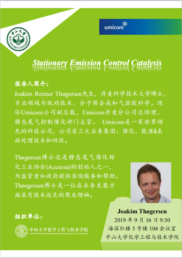报告主题:Stationary Emission Control Catalysis(静态尾气排放控制催化)